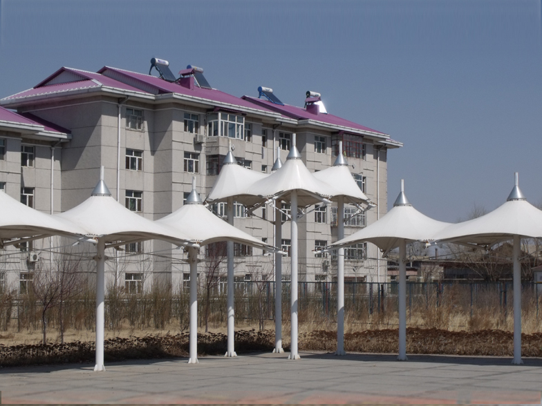 景觀膜結構又(yòu)稱張拉膜景觀,主要(yào)通(tōng)過膜結構的(de)張拉式 呈現(xiàn)出唯美(měi)的(de)結構特征;膜材料是(shì)指聚酯纖維基布或PVDF、PVF、PTFE等不(bù)同的(de)表面塗層,配以優質的(de)PVC組成的(de)具有(yǒu)穩定的(de)形态,并可(kě)承受一(yī)定載荷的(de)建築紡織品。它的(de)壽命因不(bù)同的(de)表面塗層而異,一(yī)般可(kě)達成10-20年(nián);其外(wài)觀整潔大(dà)方,自(zì)潔性強。主要(yào)應用(yòng)于各大(dà)公園,世博園,和(hé)一(yī)些(xiē)廣場(chǎng),商場(chǎng)等場(chǎng)所。