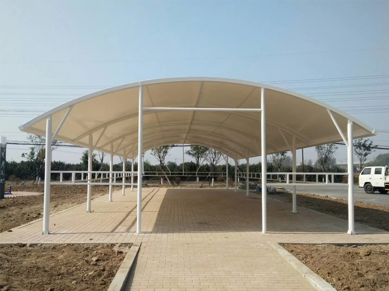 膜結構車(chē)棚是(shì)膜材料是(shì)指聚酯纖維基布或PVDF、PVF、PTFE等不(bù)同的(de)表面塗層,配以優質的(de)PVC組成的(de)具有(yǒu)穩定的(de)形态,并可(kě)承受一(yī)定載荷的(de)建築紡織品。它的(de)壽命因不(bù)同的(de)表面塗層而異,一(yī)般可(kě)達成10-20年(nián)膜結構車(chē)棚是(shì)當今比較流行(xíng)應用(yòng)的(de)一(yī)種車(chē)棚,膜材料是(shì)指聚酯纖維基布或PVDF、PVF、PTFE等不(bù)同的(de)表面塗層,配以優質的(de)PVC組成的(de)具有(yǒu)穩定的(de)形态,并可(kě)承受一(yī)定載荷的(de)建築紡織品。它的(de)壽命因不(bù)同的(de)表面塗層而異,一(yī)般可(kě)達成10-20年(nián);其外(wài)觀整潔大(dà)方,自(zì)潔性強。主要(yào)應用(yòng)于各大(dà)商場(chǎng),工(gōng)廠(chǎng),政府機(jī)關,學校(xiào)等場(chǎng)所。
